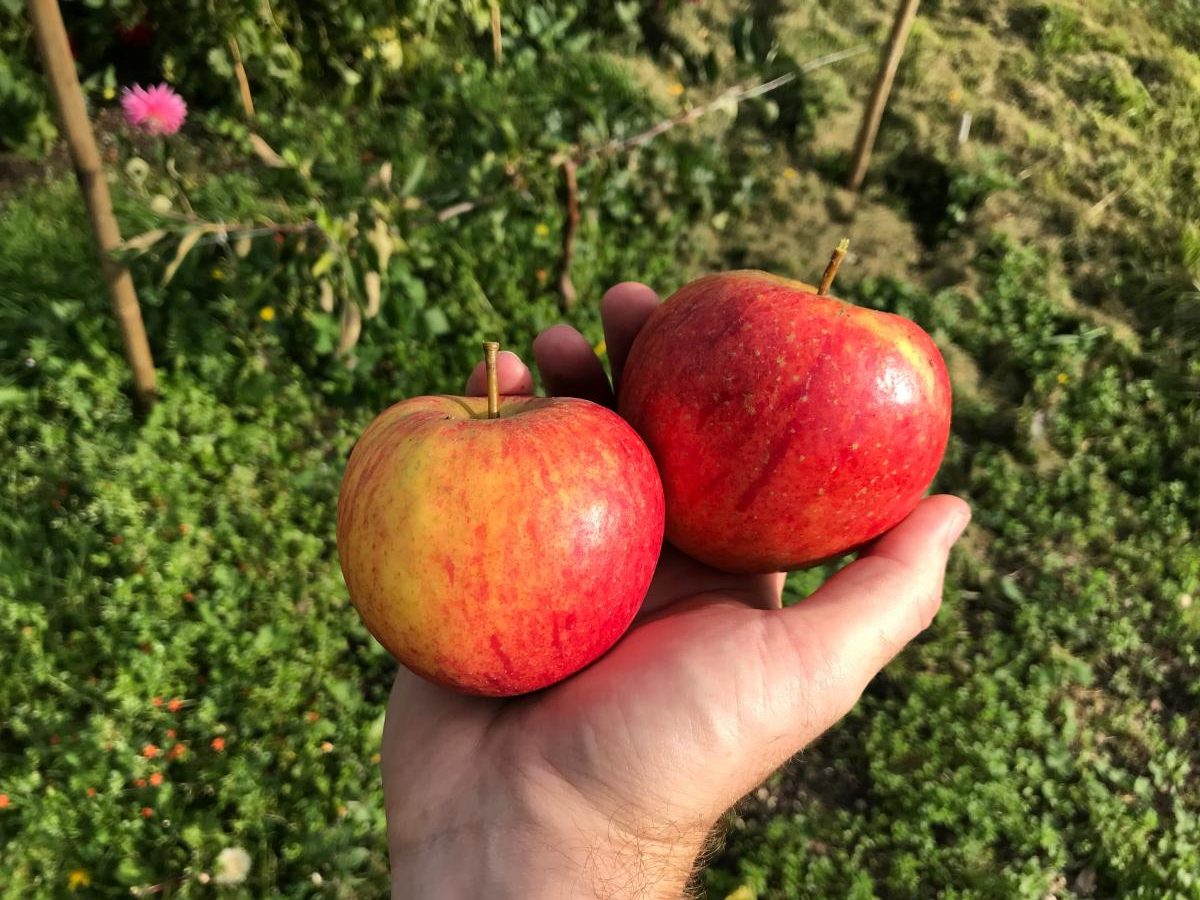 My little stepover apple trees have grown into shape well in their second season. It’s fun pruning fruit trees. One tree, cultivar ‘Falstaff’, I allowed to produce its first couple of tasty apples (you’re supposed to wait until stepovers and espaliers are established before allowing to fruit but this plant looked healthy and full of energy – and I was eager to try one of the apples). They were sweet, a little sharp and nicely crispy. In 2018 I’m looking forward to a larger crop from my three different cultivars. I’m also planning to introduce some more varieties in a mini orchard – more on this in a January update.