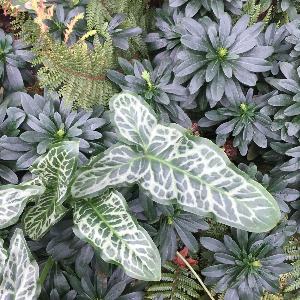 Ground cover like Pachysandra terminalis, Arum italicum and a plethora of large, established ferns of all kinds are on full display. Ferns like Polystichum setiferum and a really very impressive 2m x 2m clump of the wonderful Cyrtomium falcatum.