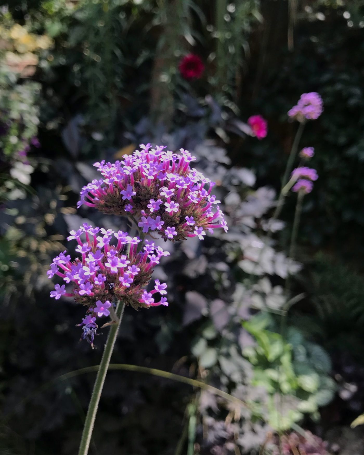 Verbena bonariensis is a common feature in gardens of ‘those in the know’ about plants. It’s a wonderful thing, extremely tall and even thinner. I added it to our garden four, maybe five years ago and this year it has self seeded rather majestically into the gravel beneath our raised bed. This new positioning suits it far better, leaping out of the hurly burly of the other flowers to stand in front without blocking sunlight. Although the purple is more a mauve-lilac than I normally grow in our garden, it has a strange UV glow that fits the place. A plant loved into mass popularity, it rightly deserves its place in gardens. We just need to keep being creative with it to prevent this falling in line with the ubiquitous Euonymus and Pampas grass.