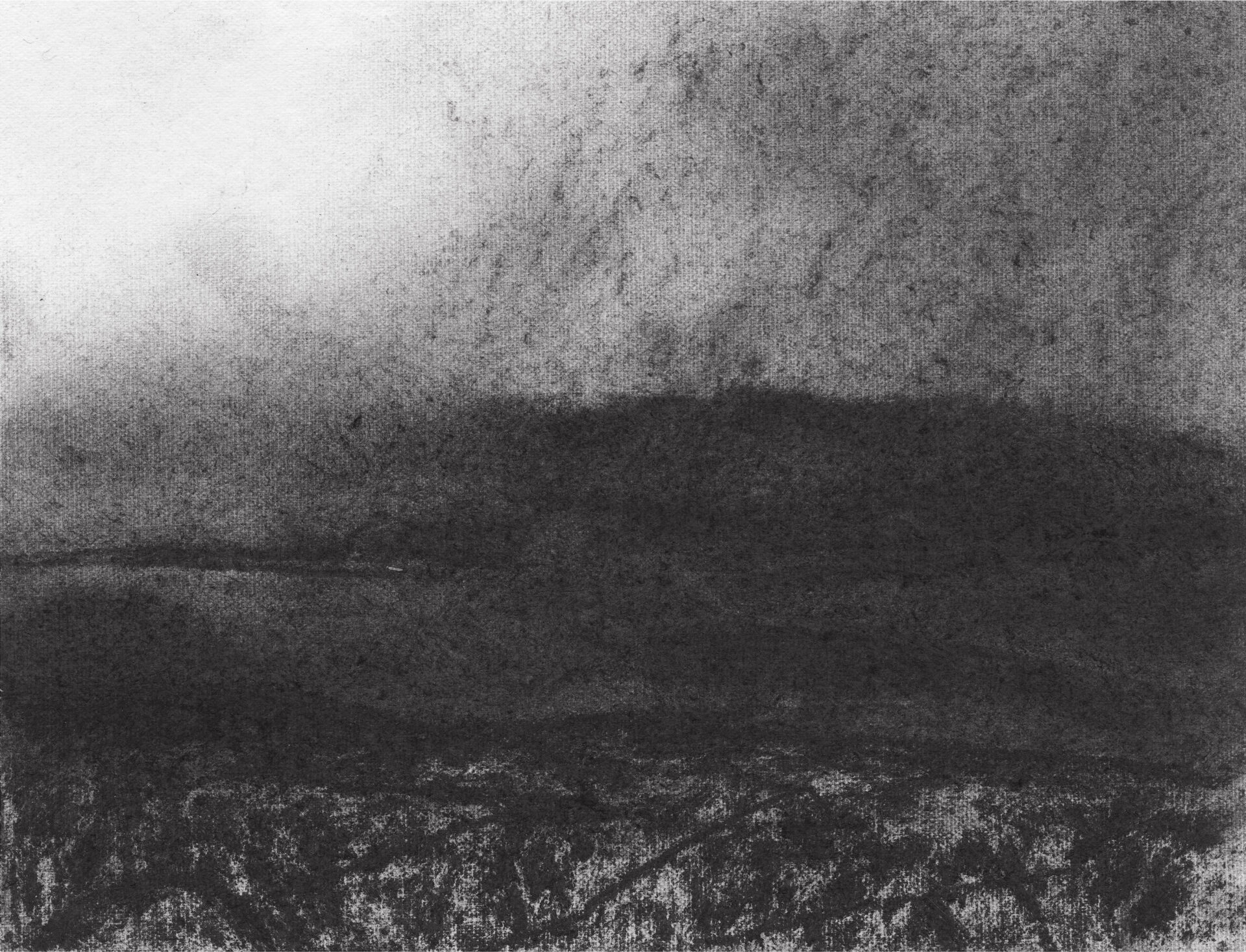 Fusion Rising is part of a first wave of landscape studies in my 1,000 landscapes project. Inspired by the sun emerging from the peatland moor above our farm, burning through the morning haze, reminding us of the rugged, unpredictable nature of this spot on planet Earth. It is chiaroscuro, the study of light and shadow, using charcoal on a handmade textured paper, helping draw out the mood of the wild Pennine hilltop moors.